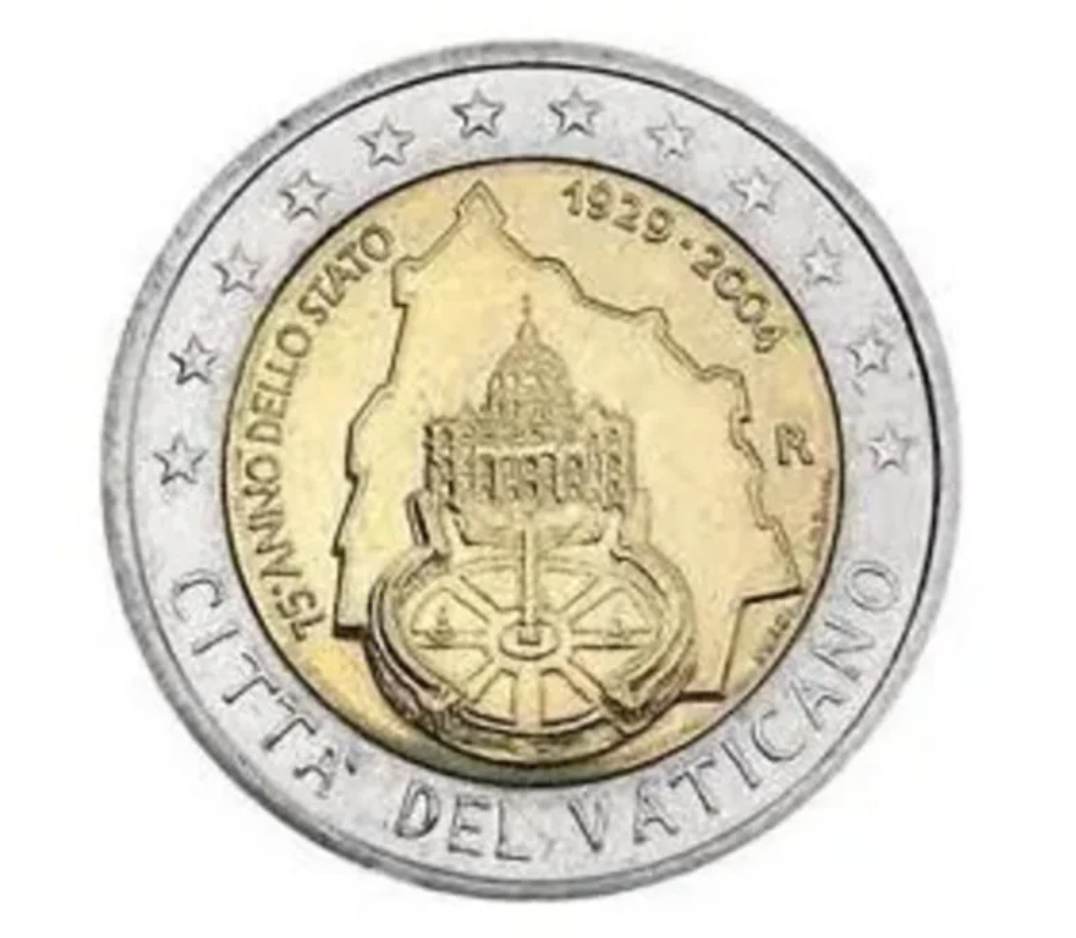 Celle-ci célèbre les 75 ans de la fondation de l'État de la Cité du Vatican. Elle vaut environ 100€.