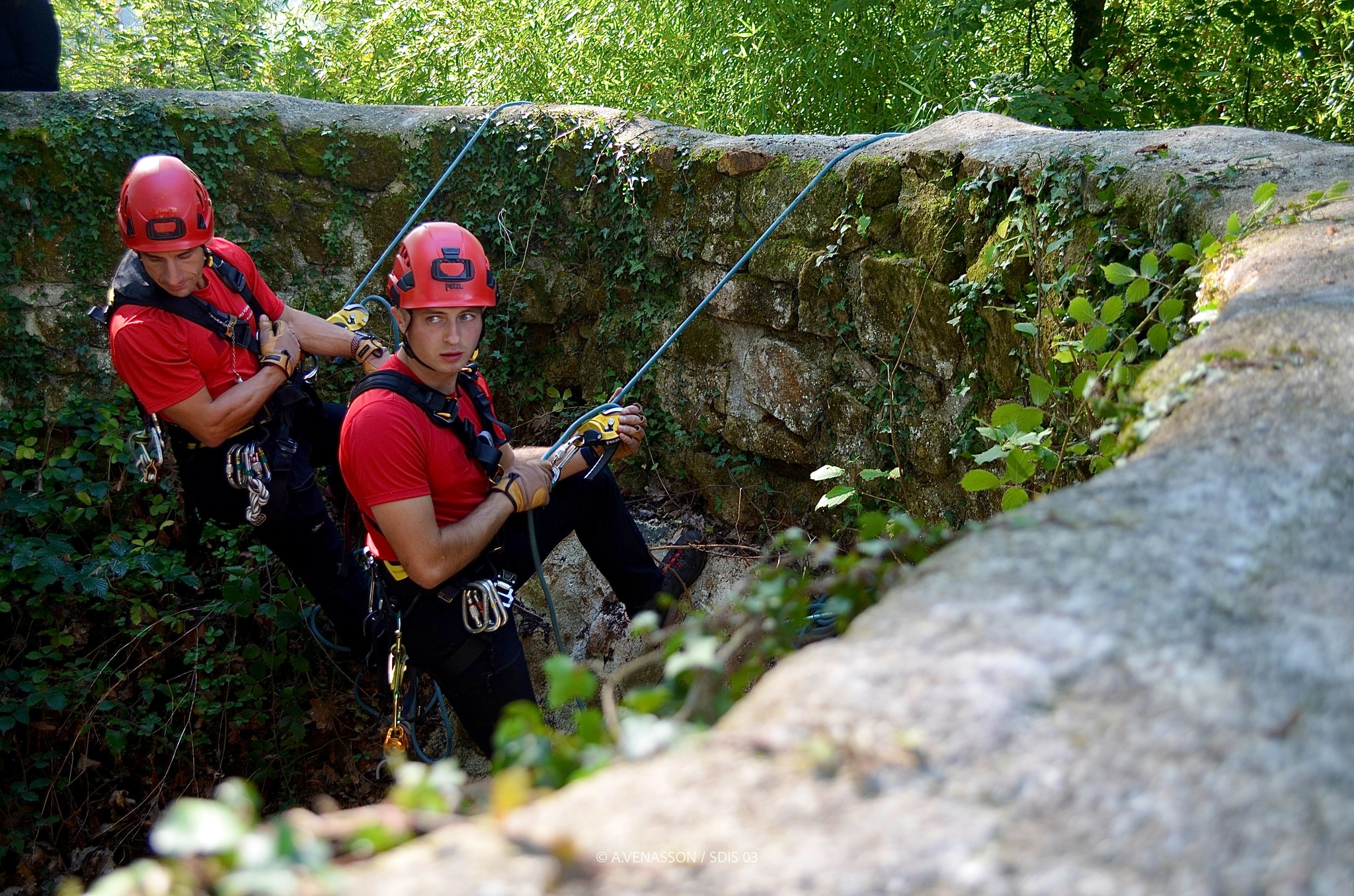 Une vingtaine de pompiers ont été mobilisés sur place pour venir en aide au pauvre animal en détresse. Pour le sortir de là, les grands moyens ont été employés : sécurisation de la zone, descente en rappel et le déploiement d'un bras télescopique.