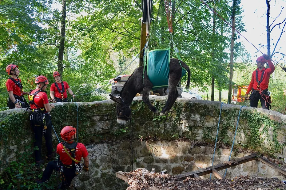 C'est une opération impressionnante qui s'est déroulée dans l'Allier ce mercredi 8 octobre. Hier matin, un âne a eu la malchance de tomber dans un trou de 3 mètres de profondeur à Montcombroux-les-Mines.