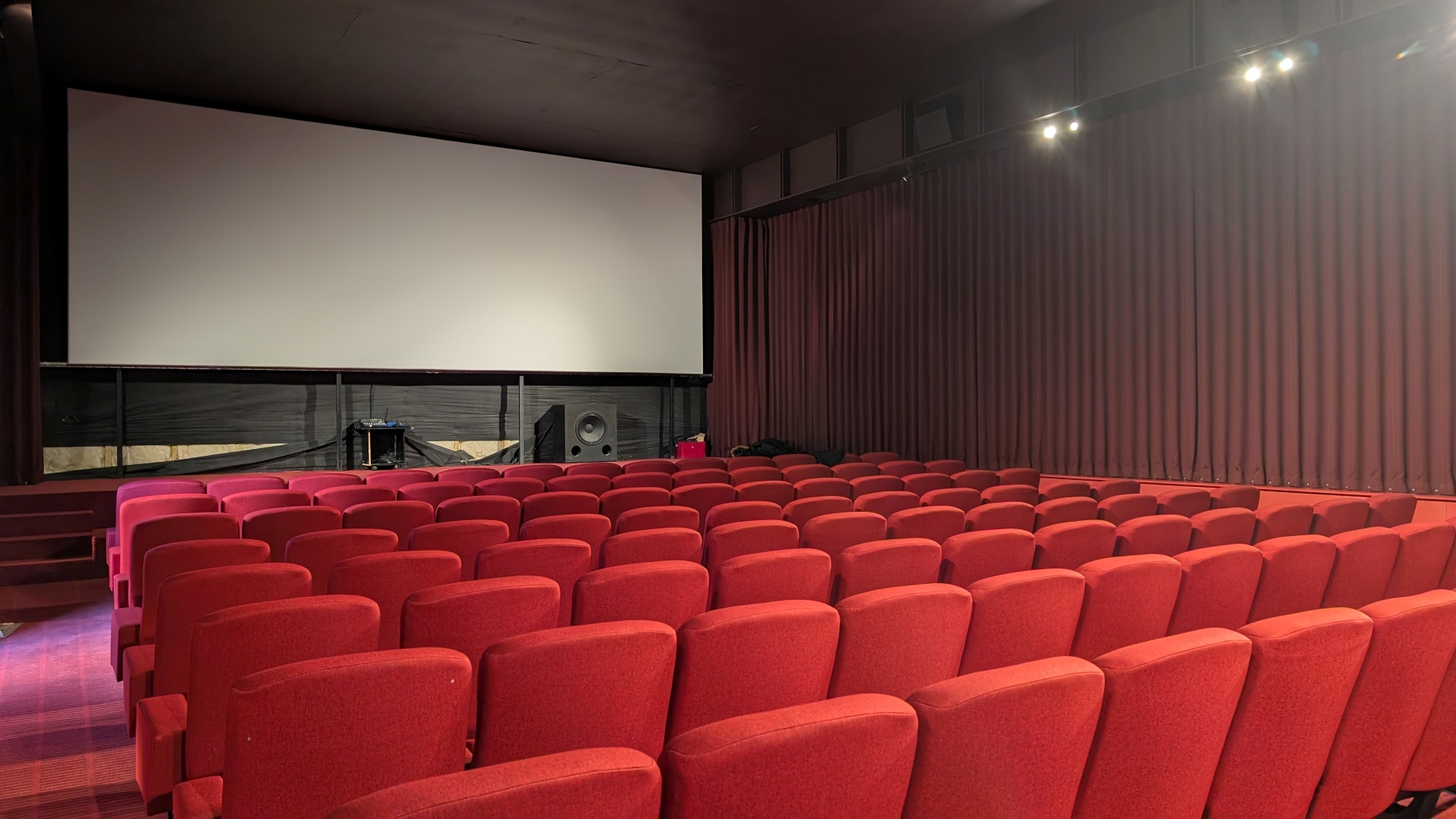 À quelques jours de l'inauguration, la salle du cinéma n'était pas encore totalement prête. Mais les nouveaux sièges sont bien en place tout comme son ambiance chaleureuse. Des sièges aux murs, la couleur dominante reste le rouge emblématique des salles de cinéma.